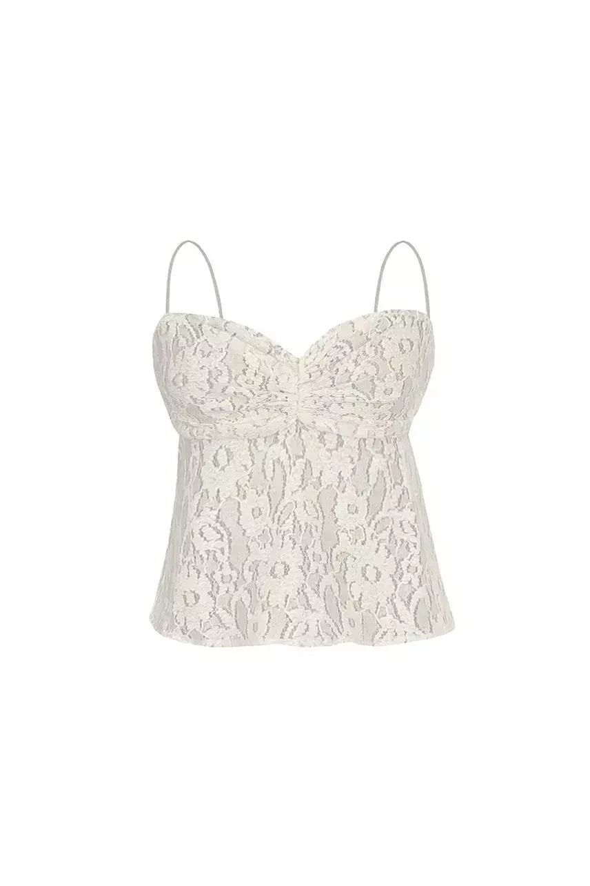 Blusa confeccionada em renda floral jacquard, com modelagem slim e comprimento curto. A peça conta com alças delicadas, decote princesa e detalhe drapeado que valoriza o busto. O fechamento posterior em zíper de metal e o acabamento em barra à fio garantem um toque sofisticado e moderno.